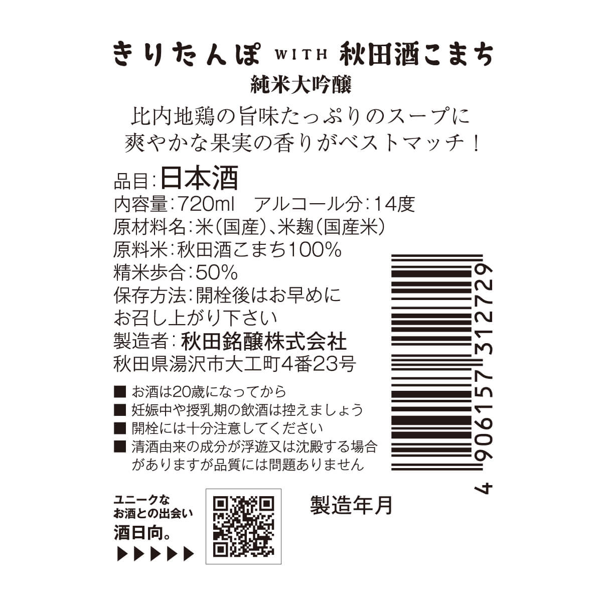 | 生産者 | 秋田銘醸株式会社 |