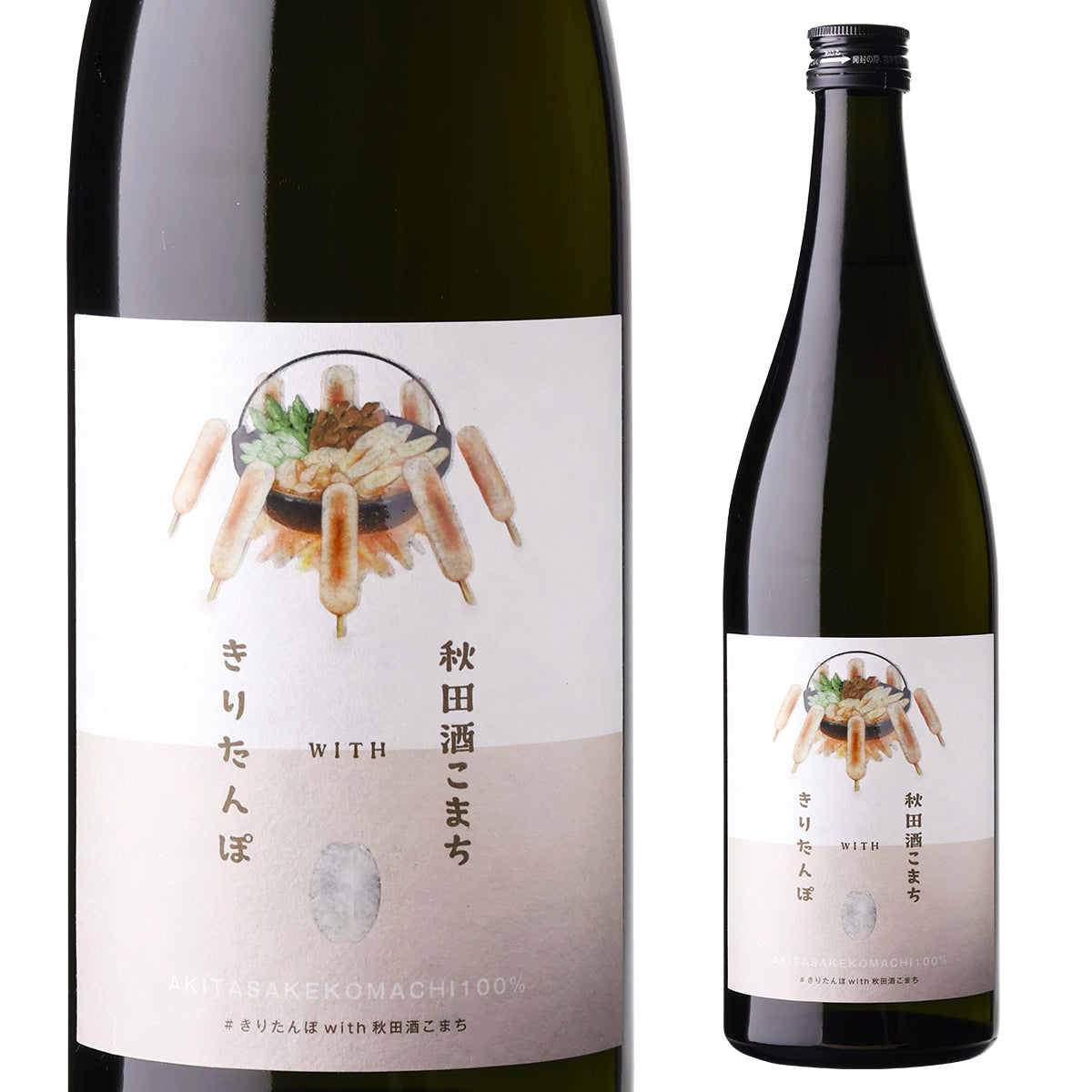 比内地鶏の旨み溢れるスープにシャキシャキのセリ、 そして具材の旨みをたっぷり吸ったしみしみきりたんぽ。 秋田が生んだ冬のご馳走、きりたんぽ鍋に完璧に合う、秋田県産「秋田酒こまち」を使用した日本酒です。メロンやパイナップルを思わせる華やかな香り。少し温度が上がると米本来の旨みが溢れ出します。冷酒で雑味のないクリアな味わいとフルーティーで爽やかな香りを存分に味わった後に常温で楽しむのもおすすめ。米の旨みをより一層感じられます。鍋の締めの雑炊にこの日本酒を一滴たらすと米の旨みが二重三重になり、新たな次元に到達します。米と米、旨みと旨みの正面衝突です。